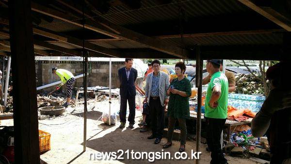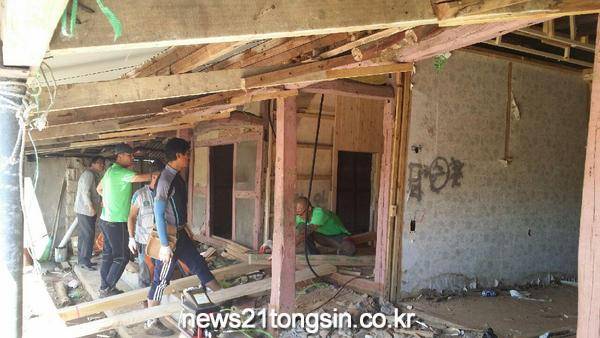 장마철 우수기에 집안 곳곳이 누수가 심하여 고생하고 있는 추남선 할아버지와, 어려운 가정형편으로 3명의 식구의 살림살이를 하고 있는 김형섭씨의 소문을 듣고 청년회원들이 뜻을 모았다.