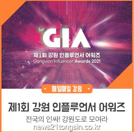 ‘제1회 강원 인플루언서 어워즈(1st Gangwon Influencer Awards, 이하 GIA*)’가 8월 18일(수) 16:00, 강원도 글로벌 디지털스튜디오에서 “챌린지데이”를 시작으로 전국 “인싸”들의 선한 영향력을 강원도에 집중한다.