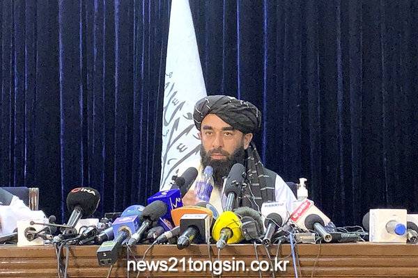 이슬람 무장조직 탈레반이 아프가니스탄을 장악한 후 첫 기자회견을 열었다.