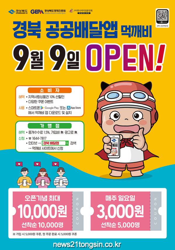 경상북도는 경북 공공 배달앱 먹깨비의 공식 오픈일을 다음 달 9일로 확정하고 배달앱(이하 앱)의 성공 열쇠인 소비자 가입 홍보에 본격적으로 나선다고 19일 밝혔다.