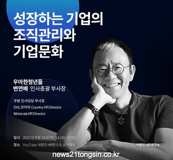 웨비나는 사람인HR 내부 싱크탱크인 ‘사람인 HR연구소’ 공식 유튜브 채널에서 26일 오후 4시부터 약 1시간 동안 진행된다. 참가비는 무료다. 사전등록은 25일까지 받으며, 등록 인원에게는 행사 후 강연 요약본을 제공한다.