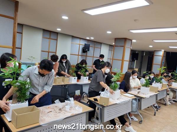 이번 부모-자녀 소통 교육은 ‘지구야 미안해~ 우리가 변할게!!’를 주제로 실시됐다. 갈수록 뜨거워지는 지구에 대해 함께 공부하고, 가정에서 녹색생활을 실천할 수 있는 체험 프로그램으로 진행됐다. 초등학생의 경우 채식 요리체험에 참여했다. 건강한 식재료에 대한 교육과 다양한 채식 요리에 대한 레시피를 제공했고, 직접 음식을 만들어 보며 가정에서도 채식을 접 할 수 있는 기회를 제공했다. 중학생의 경우 가족 화분 만들기 체험에 참여해 가정 내 공기정화 및 탄소 배출을 줄이는 교육을 받을 수 있었다.