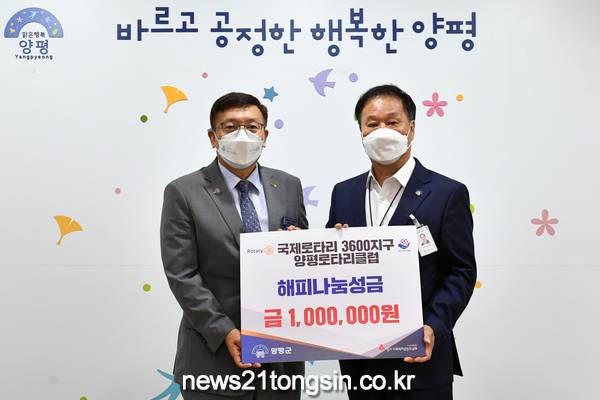 지난 25일 국제로타리 3600지구 양평로타리클럽(회장 임관수)에서는 관내 취약계층을 위한 해피나눔성금 100만원을 기부하였다.