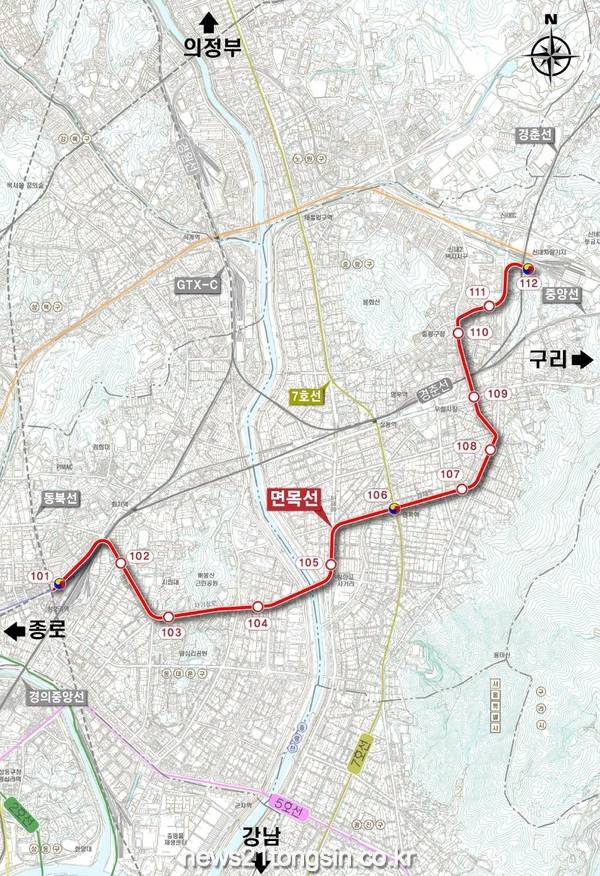 신내동부터 면목동, 동대문구 청량리까지 연결되는 면목선 도시철도는 총연장 9.05km에 정거장 12개소를 편도 22분 안에 운행하는 노선이다. 전철이 개통되면 면목동, 신내동 지역주민들의 도심접근성이 향상될 것으로 기대된다.