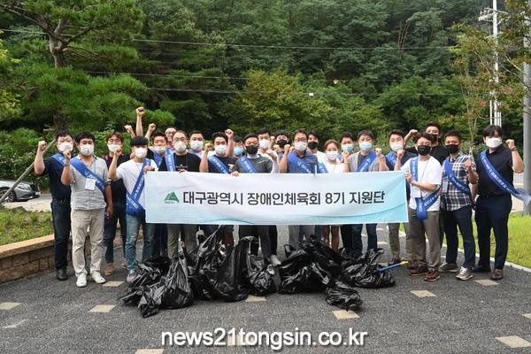 (대구=뉴스21통신) 유재원기자 = 대구광역시장애인체육회는 市장애인체육회 지원단과 25일 대구체육공원 내에서 ‘플로깅(Plogging)’ 행사를 가졌다.