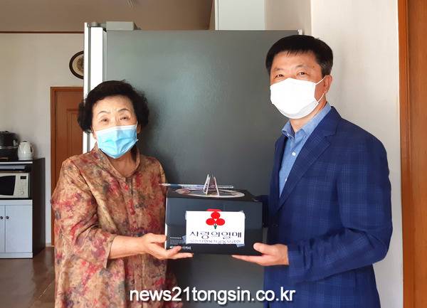 후원해 준 사랑의 케이크를 지역 내 홀몸 어르신에게 전달했다.