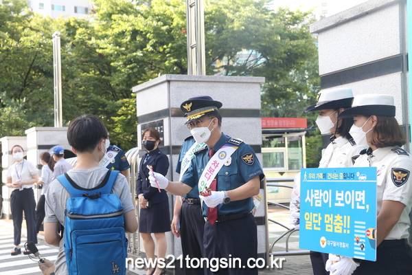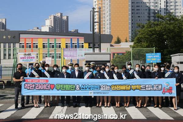 (대구=뉴스21통신) 박창남기자 = 달서경찰서(총경 신동연)는’21. 8. 26(목) 08:00경 송일초등학교에서 2학기 초등학교 개학에 따라 어린이 교통사고 예방을 위해 스쿨존 교통안전을 위해 유관기관(경찰·자치단체·녹색어머니회 등) 합동, 개학철 어린이 교통안전 캠페인을 개최하였다.