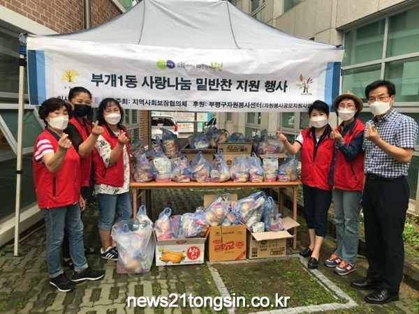 부개1동 지역사회보장협의체는 매월 지역의 어려운 이웃 30가정을 발굴해 밑반찬 나눔 사업을 실시하고 있다. 8월에는 계속되는 코로나 확진환자 증가로 사람들이 다수 모이는 것을 방지하기 위해 완제품으로 된 삼계탕과 과일 등을 지역의 형편이 어려운 이웃들에게 지원했다.