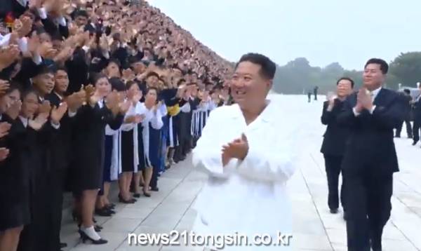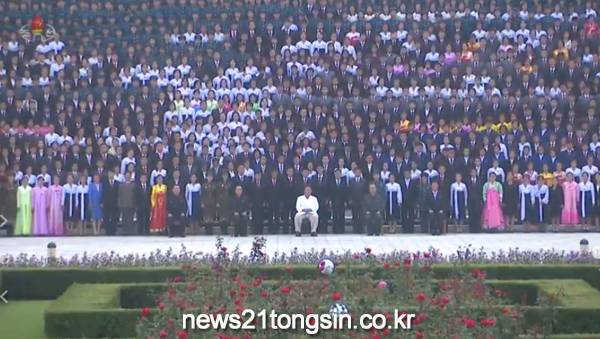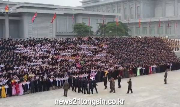 [포토]김정은, 청년절 경축 참가자들과 사진 촬영