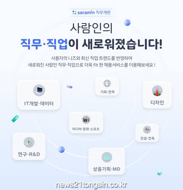 ‘직무 중심의 채용’이 취업 시장의 대세가 되면서, 원하는 직무에 맞는 채용 정보를 얻으려는 사용자들의 니즈도 커졌다. 이에 구인구직 매칭 플랫폼 사람인(www.saramin.co.kr 대표 김용환)이 직무에 특화된 서비스 제공을 위해 ‘직무 카테고리’를 개편했다.
