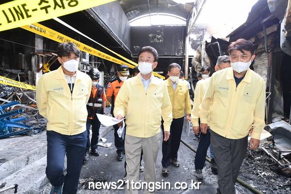 이철우 경북도지사는 긴급히 화재현장을 방문해 피해현장을 세밀히 둘러 본 후“모든 행정력을 동원해 하루 빨리 생업으로 돌아갈 수 있도록 최대한 지원하도록 할 것”이라며 피해 상인들을 위로했다.
