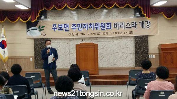 군위군 우보면 주민자치위원회는 지난2일 우보면 복지회관에서 ㈜앤디스코나 안성용 선생님을 비롯해 지역주민 30여명이 참석해 바리스타교육 개강식을 가졌다.