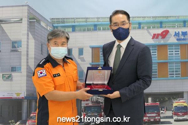 대전서부소방서는 3일 서장실에서 화재피해 취약계층에 지정기탁금을 기부한 고석찬 목사(대전중앙장로교회)에게 감사패를 전달했다고 밝혔다.