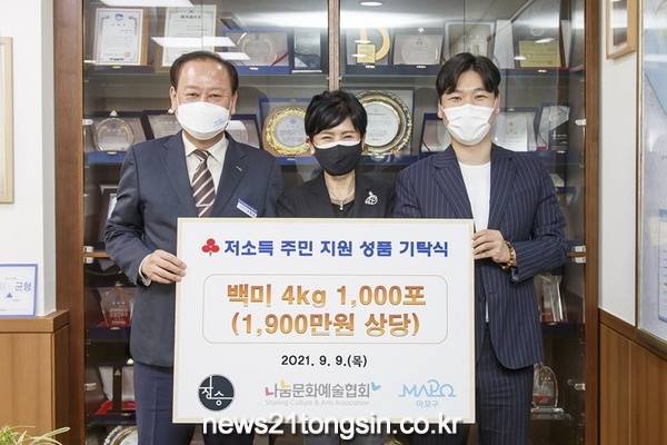 (사)나눔문화에술협회(이사장 유현숙, 이하 나눔협회)가 지난 9일 마포구(구청장 유동균)에 4kg 1000 포를 전달하는 ‘쌀 나눔 행사’를 진행했다.
