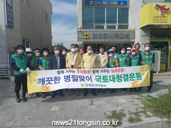 군위읍 새마을남녀지도자협의회(회장 김상배, 부녀회장 이금조)는 지난 9일 회원 30여명이 참여한 가운데 추석 명절을 맞아 관내 도로변, 하천제방을 돌며 환경정화 활동을 펼쳤다.