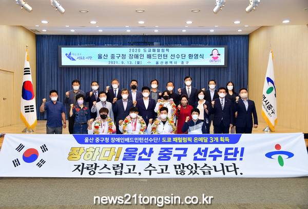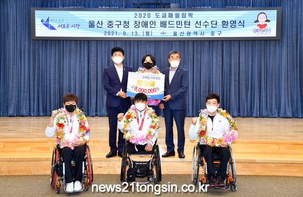 (뉴스21통신/박형만기자)=도쿄 패럴림픽 출전 장애인 배드민턴 선수단 환영식이 13일