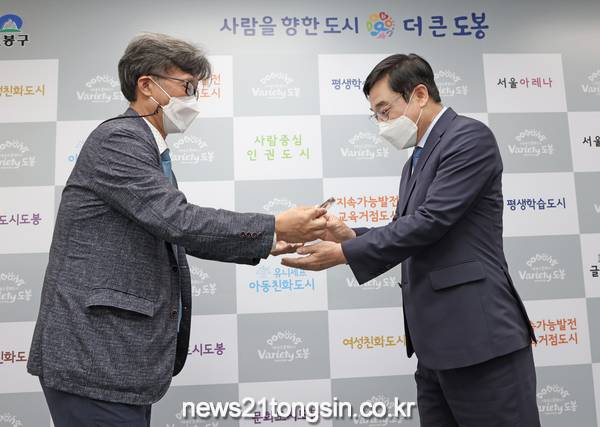 이동진 도봉구청장은 9월 10일 도봉구청 소통협력실에서 신방학초등학교 교직원 및 학부모회 일동으로부터 감사패를 전달받았다.