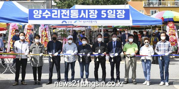 이날 양수리전통시장상인회는 정동균 양평군수가 참석한 가운데 민속 5일장 확대이전 개장식 행사를 진행하였으며 5일장 주요 출입구에 방역통제소를 운영하며 출입자 명부작성, 마스크 의무 착용, 손소독제 사용 등 철저하게 방역수칙을 준수하며 진행되었다.