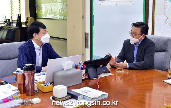 차준택 구청장은 지난 14일 구청 접견실에서 최종 한국지엠 부사장과 간담회를 진행했다.