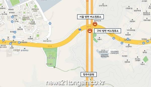 이에 구는 2018년부터 버스정류소 설치를 검토해왔으며 서울시, 경기도 구리시와 남양주시, 경찰청 등과 오랜 협의 끝에 지난 6월 버스정류소를 신설했다.