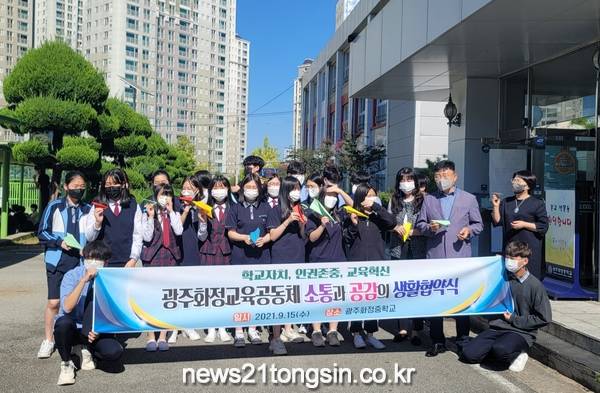 광주화정중이 15일 학생·학부모·교직원의 교육 실천 내용을 담은 ‘소통과 공감의 교육공동체 생활협약식’을 개최했다.
