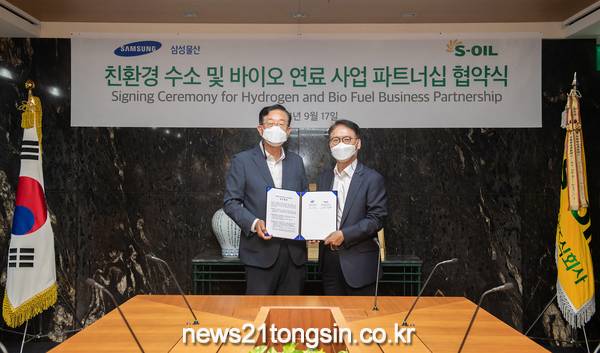 S-OIL은 지난 17일 서울 마포 S-OIL 사옥에서 경쟁력 있는 탄소중립 친환경 에너지 사업을 선도하기 위해 삼성물산과 ‘친환경 수소 및 바이오 연료 사업 파트너십 협약식’을 체결했다고 22일 밝혔다. 세계적 수준의 원유정제, 석유화학 설비를 갖춘 에너지 화학 기업 S-OIL과 삼성물산은 생산시설, 글로벌 네트워크 등 양사가 축적한 운영 노하우와 인프라를 효과적으로 결합하여 전 밸류 체인 수소 및 바이오 연료 사업을 공동 개발한다.