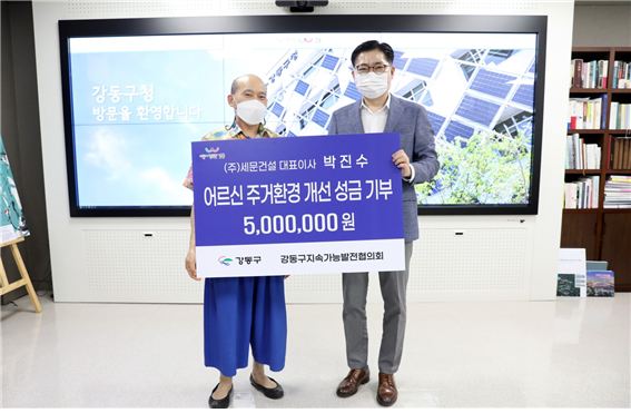 강동구(구청장 이정훈)가 지난 9월 15일(수) 강동구지속가능발전협의회 실천사업 추진을 위한 500만 원 상당의 기부물품을 전달받았다.