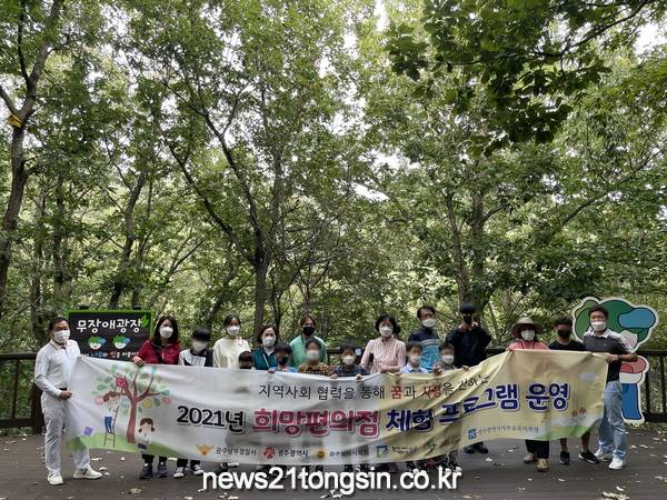 광주서부교육지원청이 광주남부경찰서와 함께 ‘희망편의점’ 사업의 일환으로 지난 25~26일 이틀 동안 아동복지시설 학생 대상 숲 체험 프로그램 ‘숲, 그 품에서 오감을 느끼다’를 실시했다.