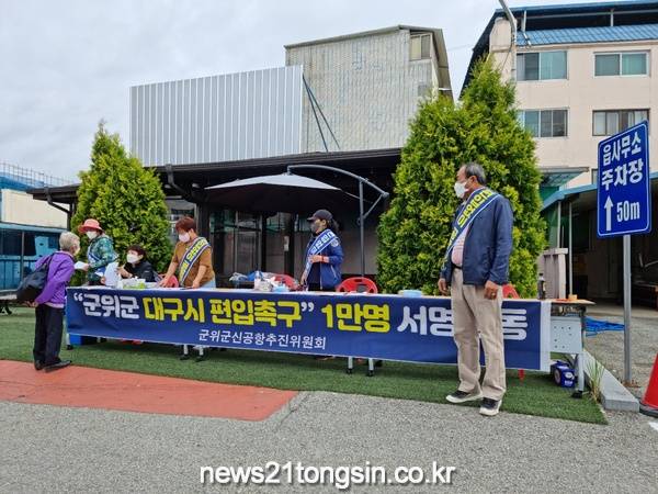 군위군 통합 신공항 추진위원회(대표 박한배)가 연내에 군위군의 대구시 편입을 완료하기 위해 군위군민을 대상으로 군위군의 대구시 편입을 촉구하는 1만명 서명운동에 나섰다.