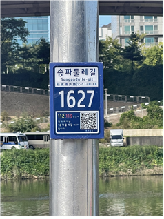 구는 또 송파둘레길 진출입 등 주변지도와 구정정보를 손쉽게 확인할 수 있도록 기초번호판에 QR코드도 삽입했다. QR코드를 휴대전화로 인식하면, 현재 위치가 표시되는 지도와 송파구 SNS계정(유튜브, 인스타그램), 송파둘레길 정보, 송파구청 홈페이지 등으로 접속이 가능하다.