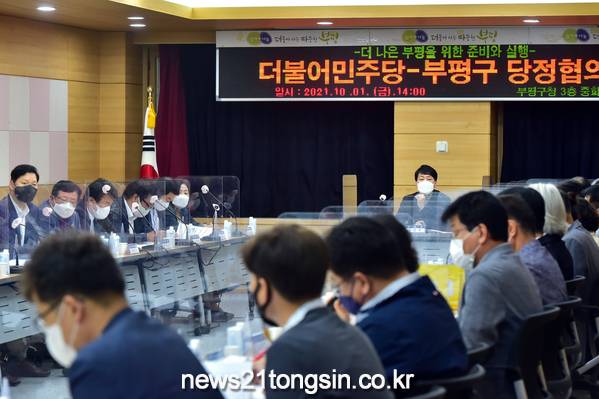 부평구(구청장 차준택)는 지난 9월 28일과 10월 1일 구청 중회의실에서 더불어민주당·국민의힘과 ‘2021년 하반기 당정협의회’를 진행했다.