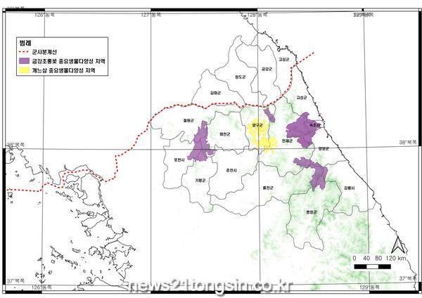 산림청 국립수목원(원장 최영태)은 국제적으로 디엠지(DMZ) 일대에만 자라는 희귀 및 특산식물인 개느삼과 금강초롱꽃의 자생지를 보전하기 위하여 세계자연보전연맹(IUCN) 중요생물다양성지역(KBAs: Key Biodiversity Areas)으로 지정을 추진하고 있다.