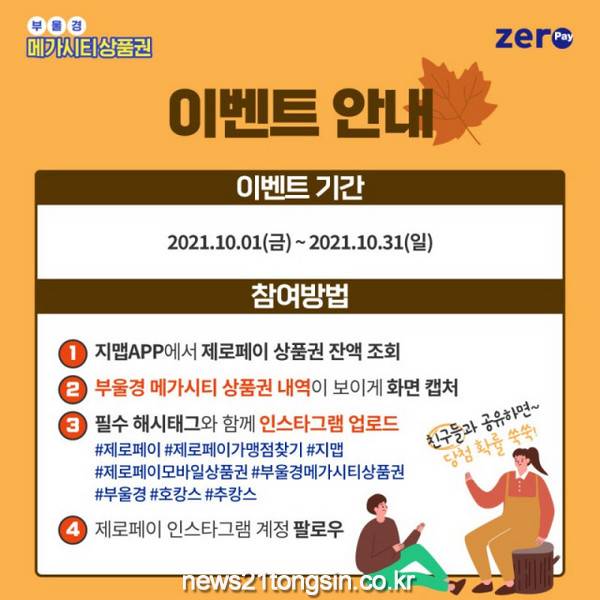 부울경 메가시티 상품권 구매 후, 제로페이 가맹점 지도 앱인 지맵(Z-MAP)의 잔액 조회 기능을 통해 인증 시 추첨을 통해 경품을 증정한다, 제로페이 공식 인스타그램 팔로우 후 필수 해시태그와 함께 인증샷을 인스타그램에 올리는 방식으로 참여할 수 있다.
