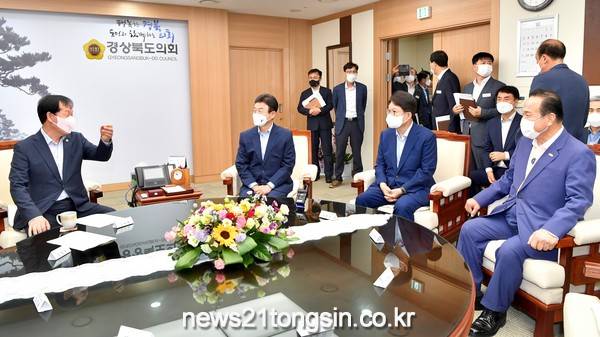 이철우 경북도지사는 8일 권영진 대구시장, 김영만 군위군수와 함께 경북도의회 회장단‧상임위원장 연석회의를 예방하고, 군위군의 대구시 편입에 대한 협조를 요청했다.