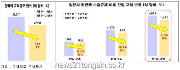 이 기간 한국의 전체교역이 코로나19의 영향 등으로 5.1% 감소한 가운데, 상호 수출규제에 따른 한국, 일본의 전반적인 상호 불신감 확산이 더해져 한일 간 교역은 9.8%나 감소하였다.