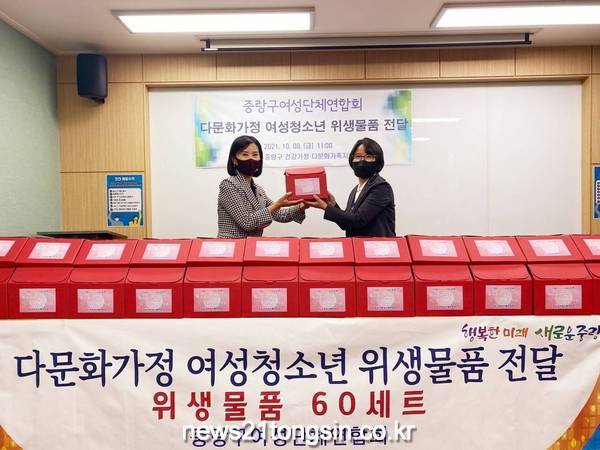 중랑구(구청장 류경기)는 8일 오전 중랑구여성단체연합회(회장 박연선)로부터 다문화가족 여성청소년을 위한 위생물품을 전달받았다고 밝혔다.