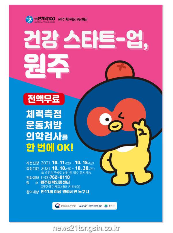 희망자는 원주체력인증센터에 전화(033-762-0110)로 예약하면 된다.