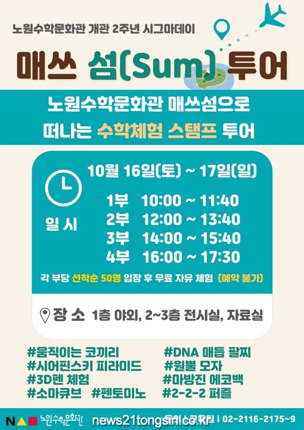 서울 노원구(구청장 오승록)가 <</span>노원수학문화관> 개관 2주년을 기념해 체험기획전 ‘시그마데이 매쓰 섬(MATH-sum)’을 운영한다고 밝혔다.