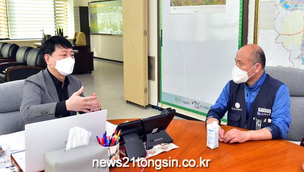 차준택 부평구청장은 13일 구청 접견실에서 김성갑 전국금속노동조합 한국지엠지부장을 만나 지역경제 상생발전을 위한 논의를 진행했다.