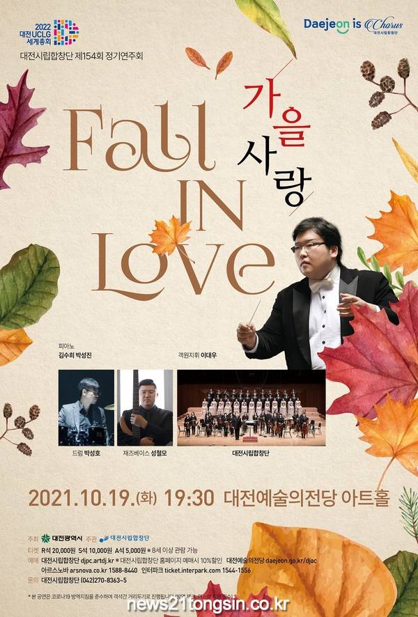 대전시립합창단이 10월 19일(화) 오후 7시 30분 대전예술의전당 아트홀에서 제154회 정기연주회“가을 사랑(Fall In Love)”을 개최한다.