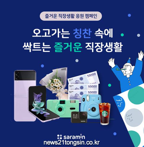 하루 중 대부분의 시간을 직장에서 동료들과 함께 보내는 직장인들이 그 시간을 조금 더 즐겁게 보낼 수 있도록 하기 위해 사람인이 나섰다. 구인구직 매칭 플랫폼 사람인(www.saramin.co.kr 대표 김용환)이 직장인들의 즐거운 직장생활을 응원하기 위해 ‘동료들과 추억 남기기 이벤트’를 진행한다고 15일 밝혔다.