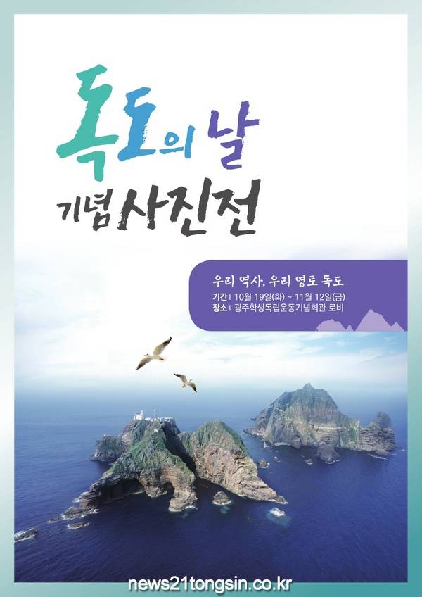 광주학생독립운동기념회관이 ‘독도의 날(10월25일)’과 ‘학생독립운동기념일(11월3일)을 맞아 오는 19~11월12일 회관 로비에서 ’우리 역사, 우리 영토 독도‘를 주제로 ’독도의 날 기념 사진전‘을 개최한다.