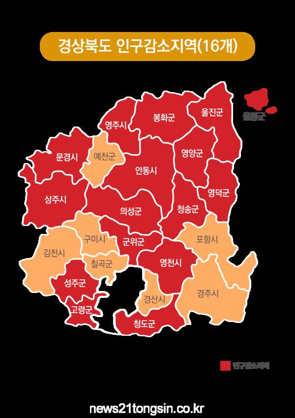 경상북도는 행정안전부가 관련 법령에 따라 경북지역 16개 시군이 인구감소지역으로 지정됐다고 18일 밝혔다.