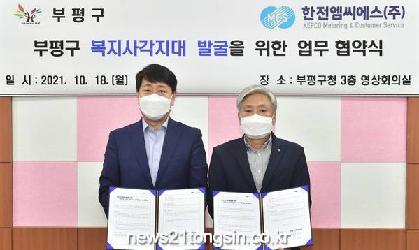 부평구(구청장 차준택)는 18일 구청 영상회의실에서 한전MCS㈜ 인천직할지점과 복지사각지대 발굴을 위한 업무협약을 체결했다.