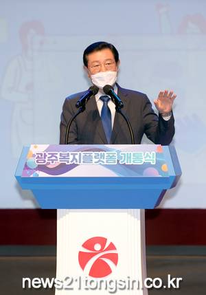 광주시는 18일 오후 시청 대회의실에서 이용섭 시장과 사회복지 유관 기관장, 복지활동가, 시민 등 50여 명이 참석한 가운데 광주복지플랫폼 개통식을 가졌다.