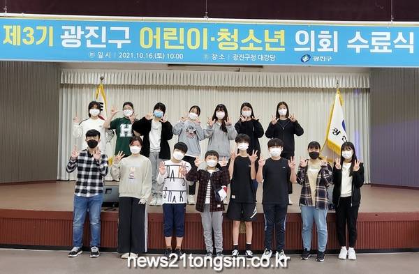 광진구(구청장 김선갑)가 지난 16일 어린이와 청소년의 참여권과 구정참여를 위한 ‘제3기 광진구 어린이‧청소년의회’의 의원 수료식을 개최했다.