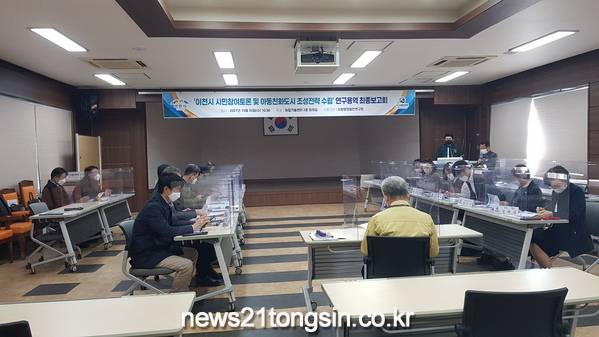 이천시(시장 엄태준)는 20일 농업기술센터 2층 회의실에서 유니세프 아동친화도시 인증 신청을 위해 지난 3월부터 8개월간 추진한 아동친화도시 연구용역을 마무리하는 ‘연구용역 최종보고회’를 개최하였다고 밝혔다.