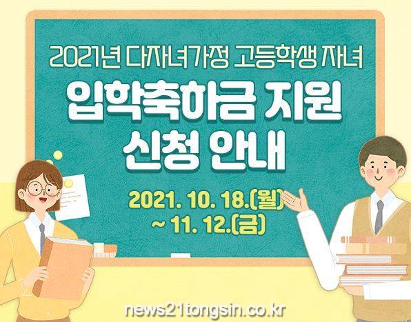 (대구=뉴스21통신) 유재원기자 = 대구시는 3자녀 이상 가정의 고등학생을 지원하는 ‘2021년 다자녀 가정 고등학생 지원사업’의 지원대상자를 11월 12일(금)까지 공고를 통해 모집한다.