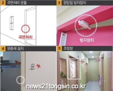안전 전문가가 개발한 디자인 가이드라인을 바탕으로 마포프레스티지자이 아파트 단지 내 구립어린이집인 산들어린이집과 해들어린이집 2곳에 ▲유모차보관 및 학부모 대기 공간 설치 ▲냉난방기 직풍 분산 윈드바이저 설치 ▲영유아 안전문 설치 등을 지난 15일 완료했다.