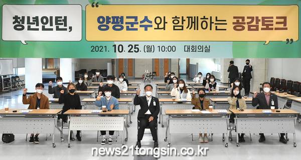 양평군(군수 정동균)은 25일 양평군청 대회의실에서 공공데이터 및 빅데이터 분석 사업을 위해 채용된 청년인턴과 ‘군수와 함께하는 공감토크’를 가졌다.